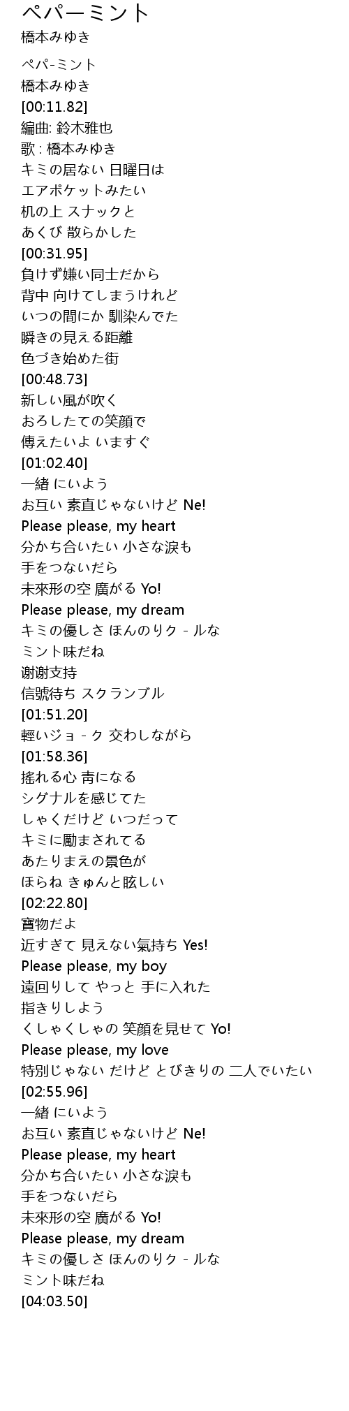 | [02:26.59] | 近すぎて 見えない氣持ち Yes! |