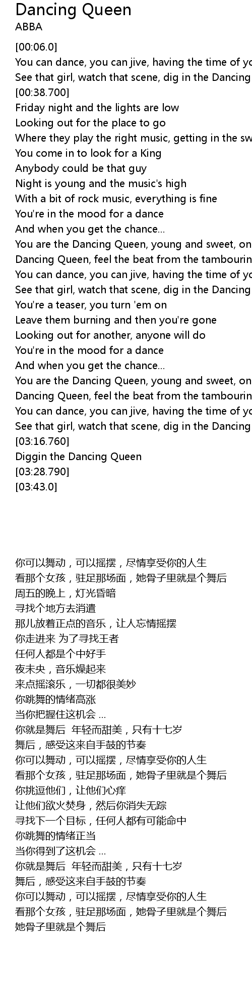 You are the Dancing Queen, young and sweet, only seventeen |