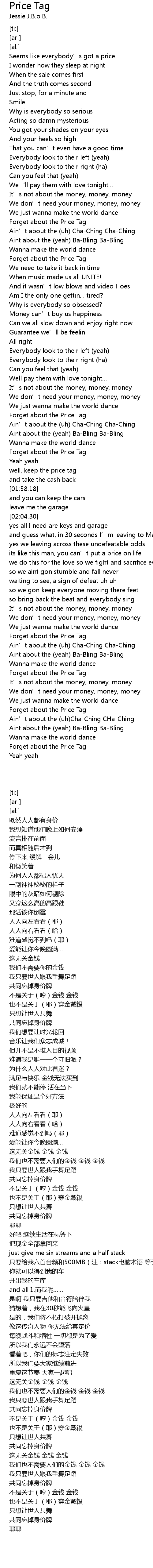 | [01:41.71] | Forget about the Price Tag |