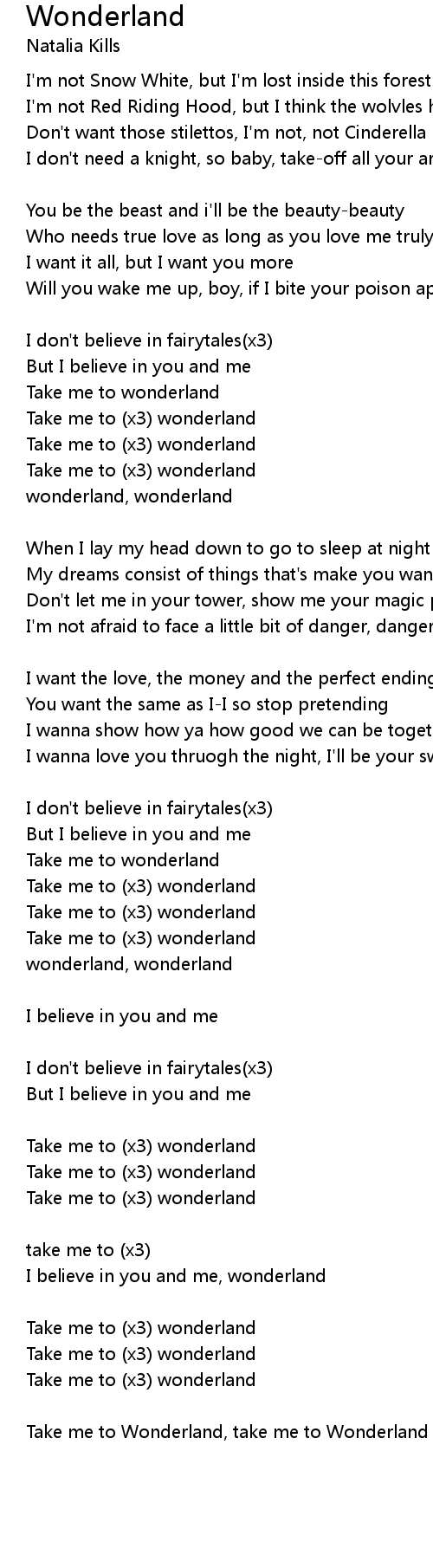 I believe in you and me, wonderland |