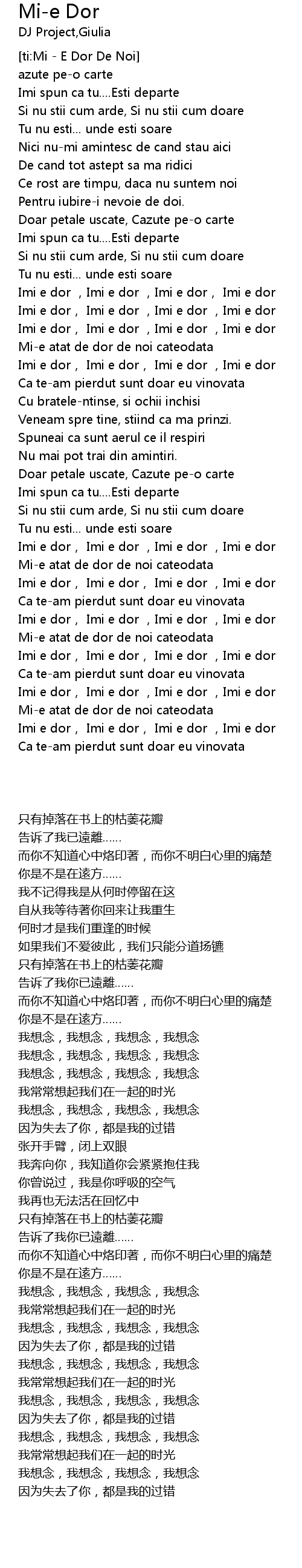 | [01:32.34] | Imi e dor, Imi e dor, Imi e dor ,Imi e dor |