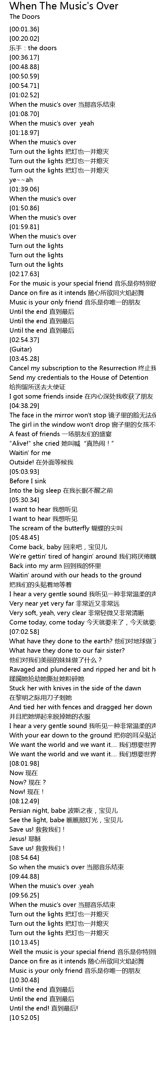| [10:01.31] | When the music's over 当那音乐结束 |