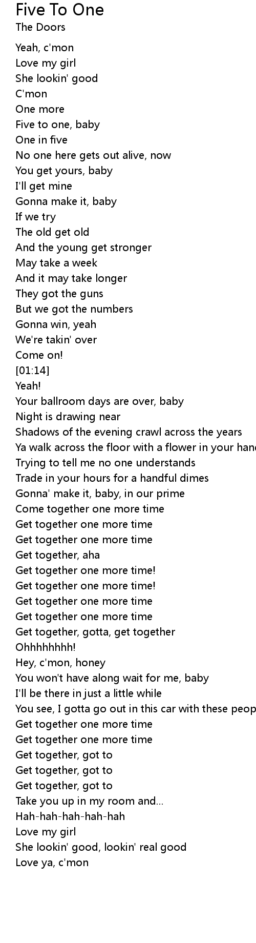 Five to one, baby |