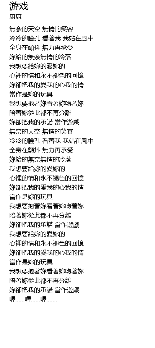 | [02:24.760] | 妳卻把我的承諾 當作遊戲 |