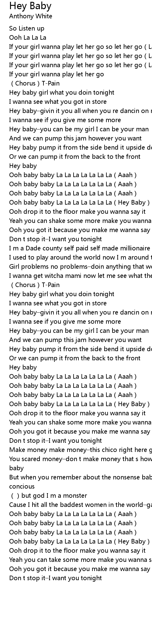 | [01:37.77] | Hey baby girl what you doin tonight |