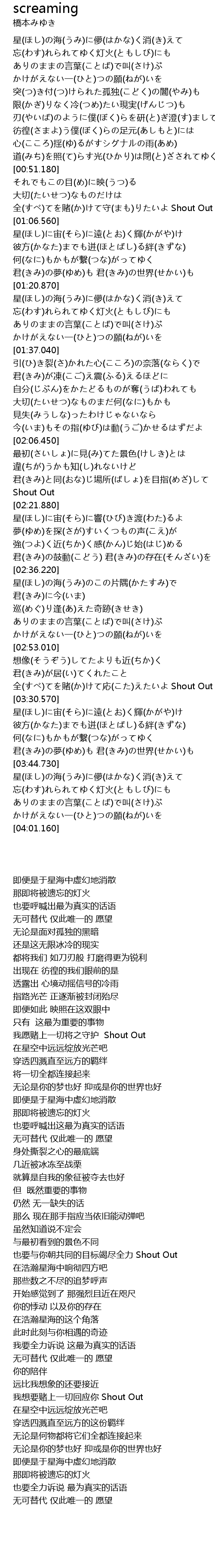 | [03:51.700] | ありのままの言葉(ことば)で叫(さけ)ぶ |