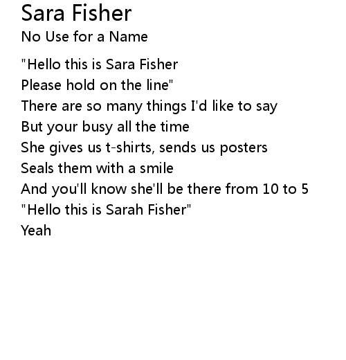 | "Hello this is Sara Fisher | |