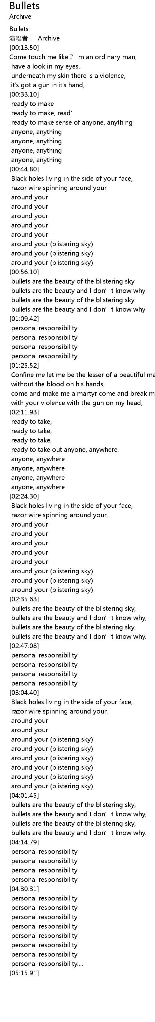 | [00:56.53] | bullets are the beauty of the blistering sky |