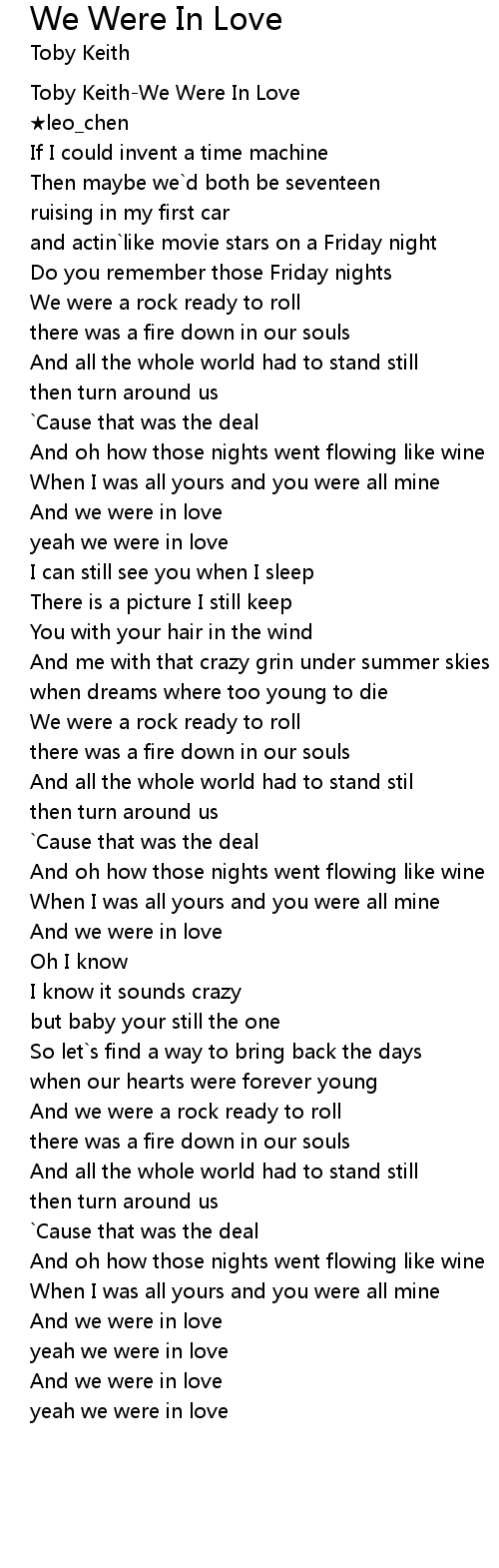 | [00:00.271] | Toby Keith-We Were In Love |