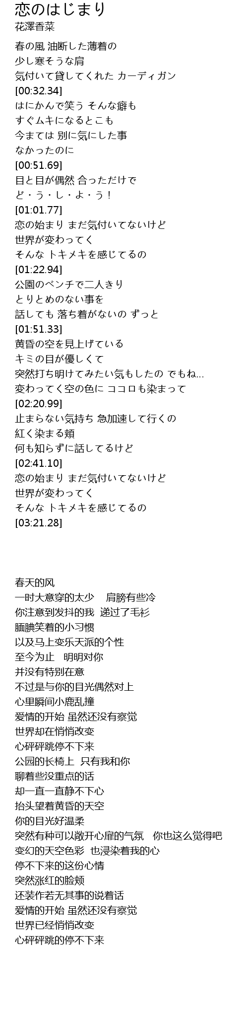 | [03:00.62] | 恋の始まり まだ気付いてないけど |