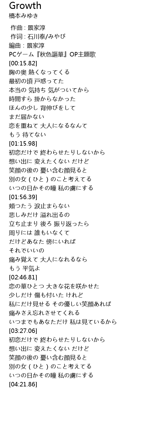 | [00:11.21] | PCゲーム『秋色謳華』OP主題歌 |