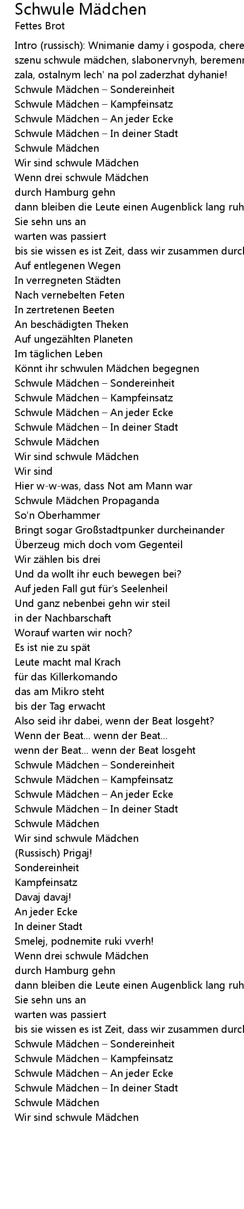 | 歌曲 | Schwule Mädchen |