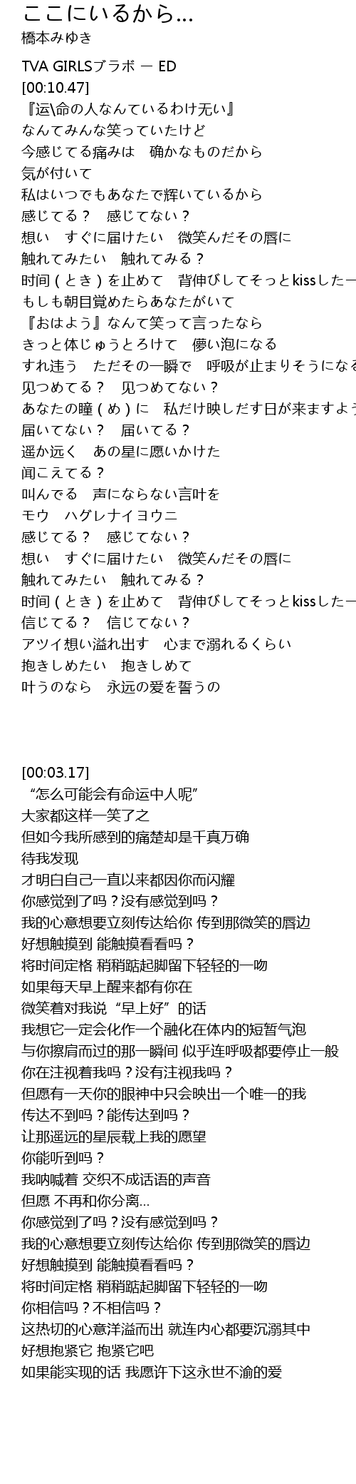 | [00:03.17] | TVA GIRLSブラボ ー ED |