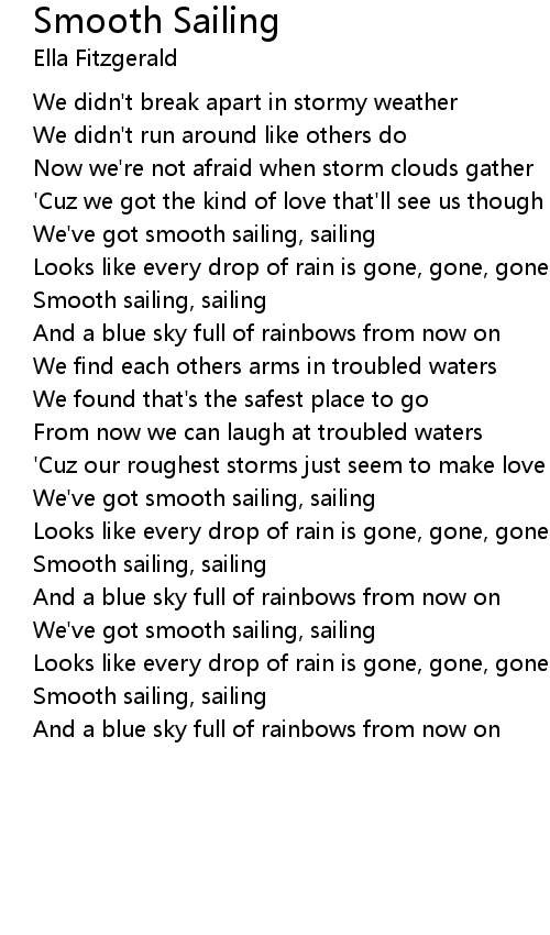 We've got smooth sailing, sailing |