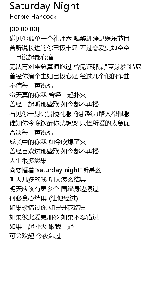 | [02:08.52] | 尚要播着"saturday night"听甚么 |