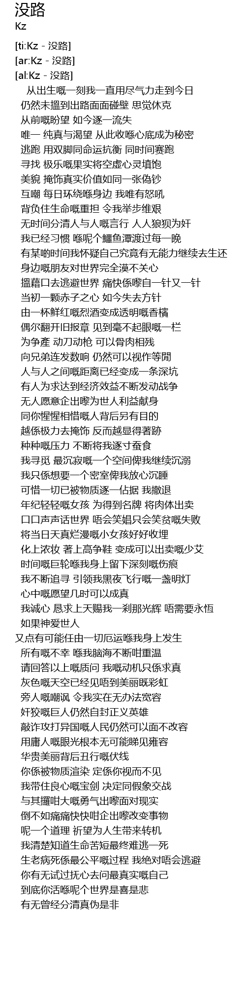 | [00:54.22] | 仍然未搵到出路面面碰壁 思觉休克 |