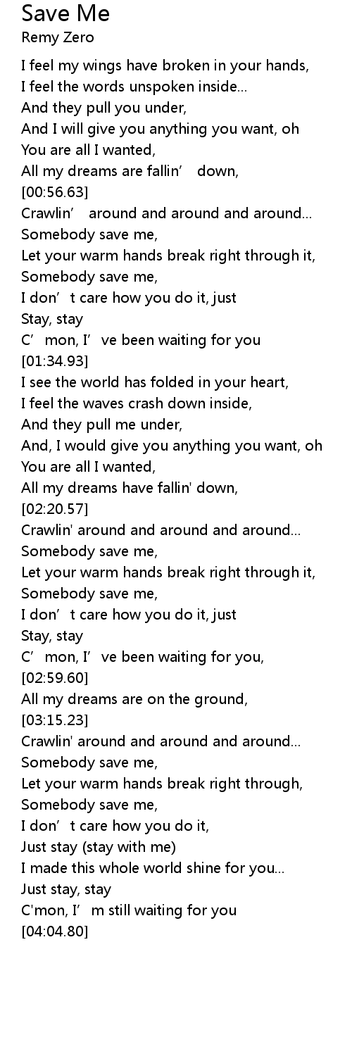 | [03:59.16] | C' mon, I' m still waiting for you |