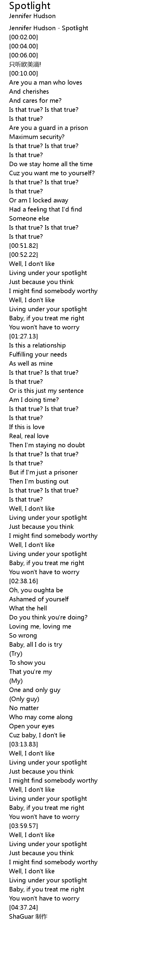 | [00:00.00] | Jennifer Hudson - Spotlight |