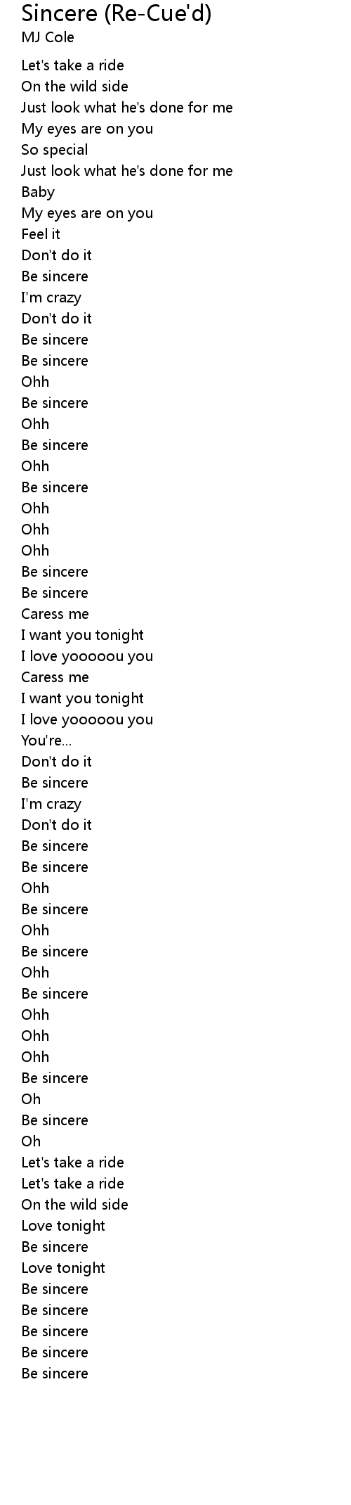 | 歌曲 | Sincere (Re-Cue'd) |