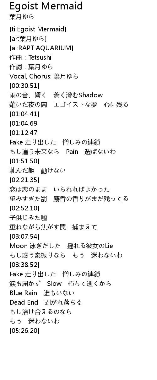 | [00:26.55] | Vocal, Chorus: 葉月ゆら |