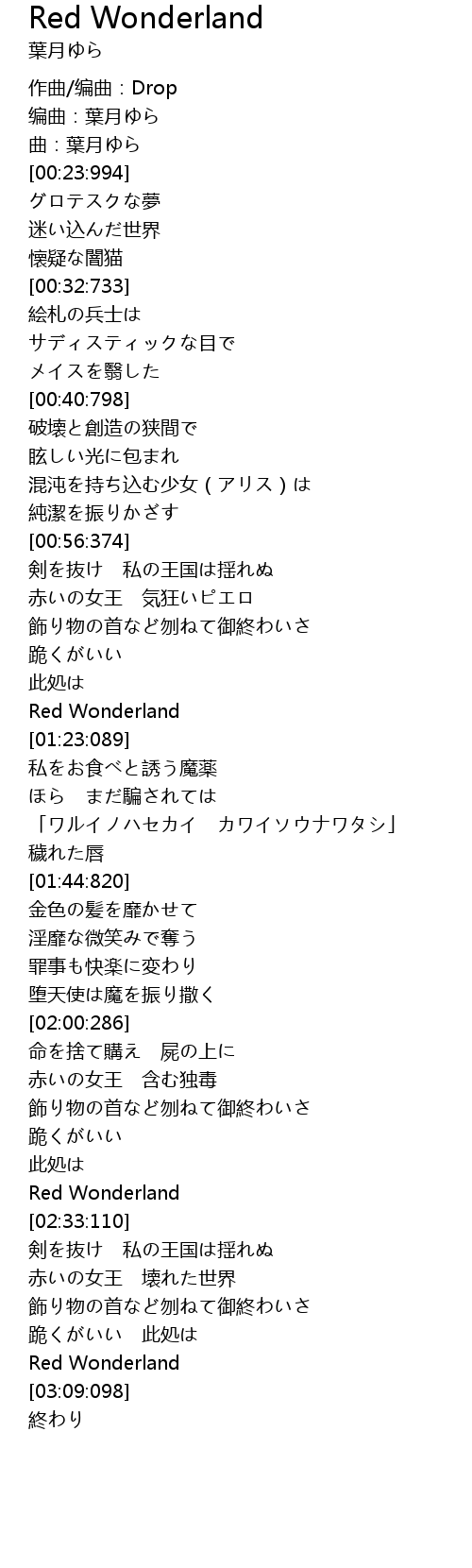 | [02:16:043] | Red Wonderland |