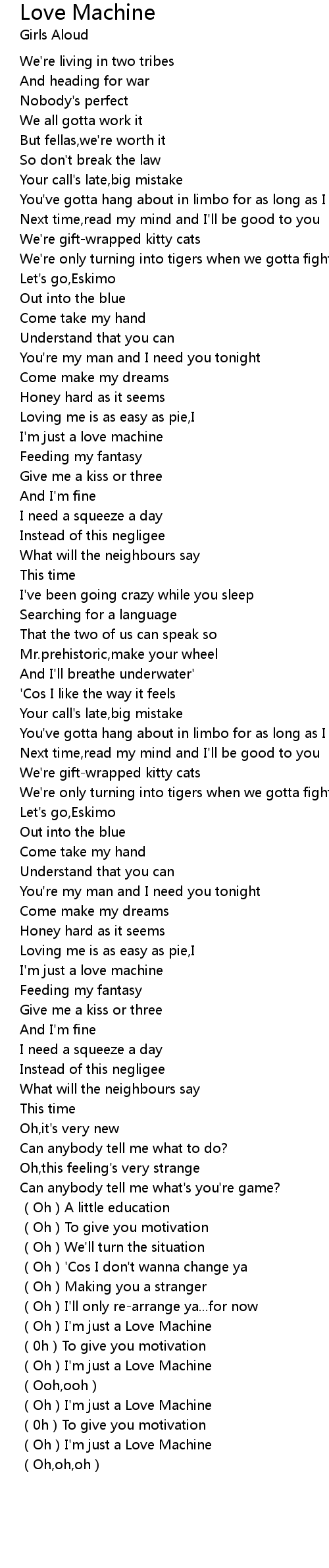 | [02:57.996] | (Oh)I'm just a Love Machine |