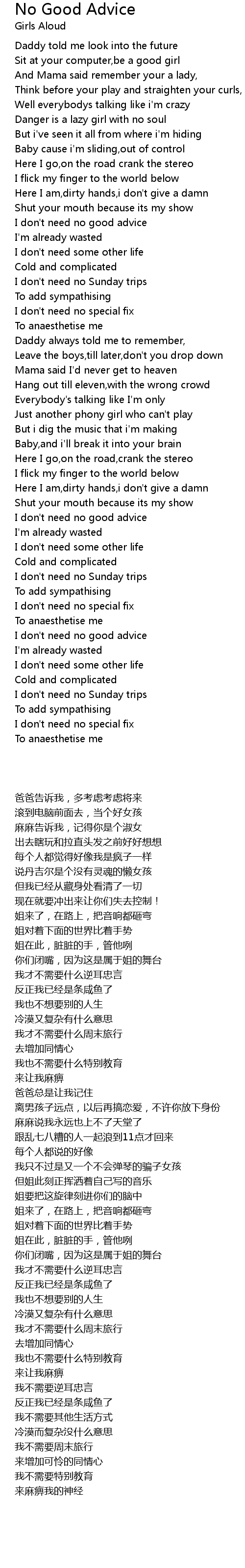 I don't need no good advice |
