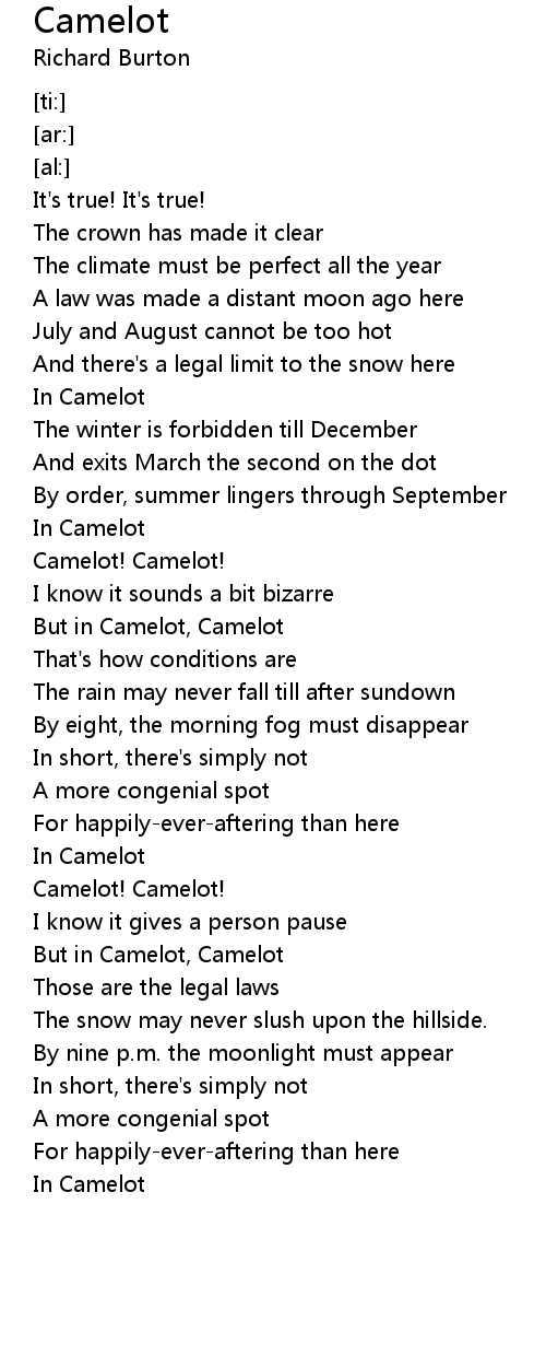 But in Camelot, Camelot |
