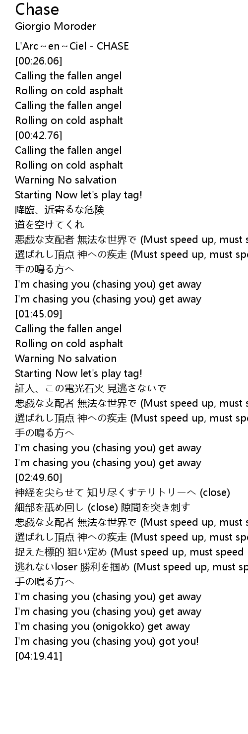 | [00:00.00] | L'Arc~en~Ciel - CHASE |