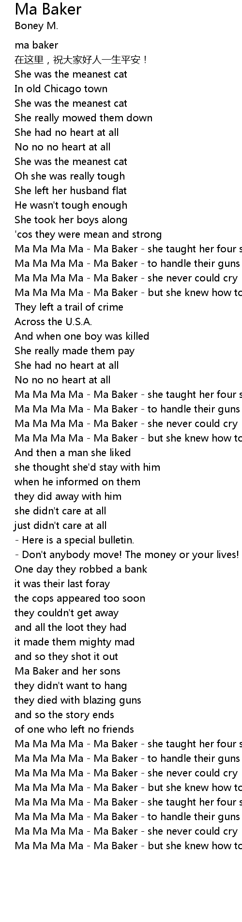 | [01:04.37] | Ma Ma Ma Ma Ma Baker but she knew how to die |