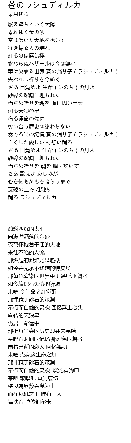 | [02:15.73] | 奏でる時の記憶 蒼の踊り子(ラシュディルカ) |