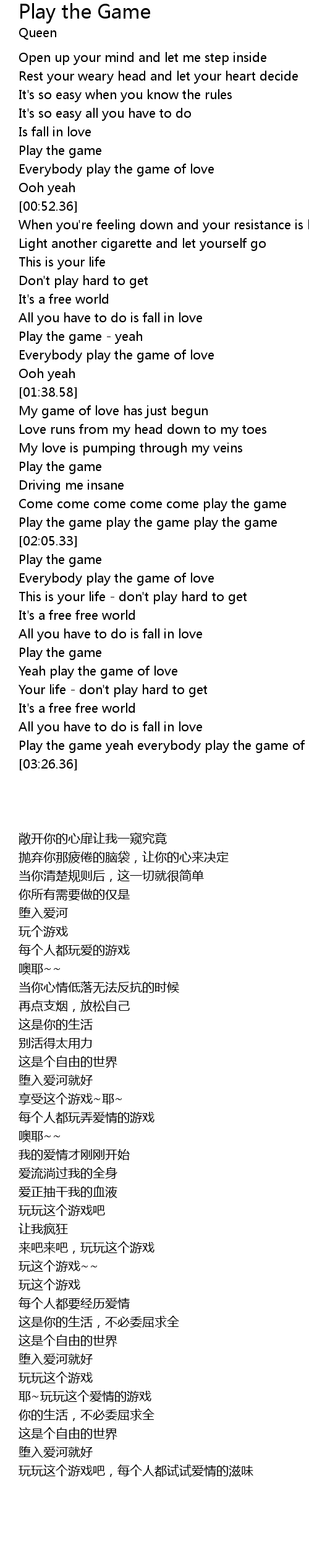 [03:20.18] Play the game yeah everybody play the game of love