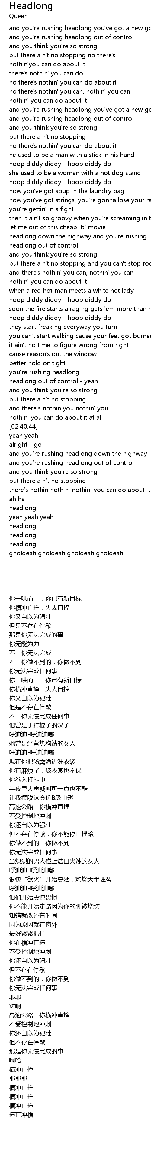 | [01:37.15] | headlong out of control |