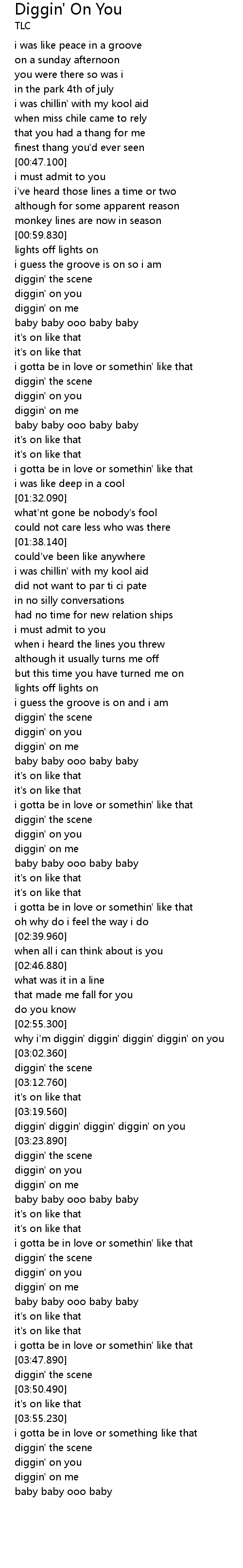 diggin' diggin' diggin' diggin' on you |