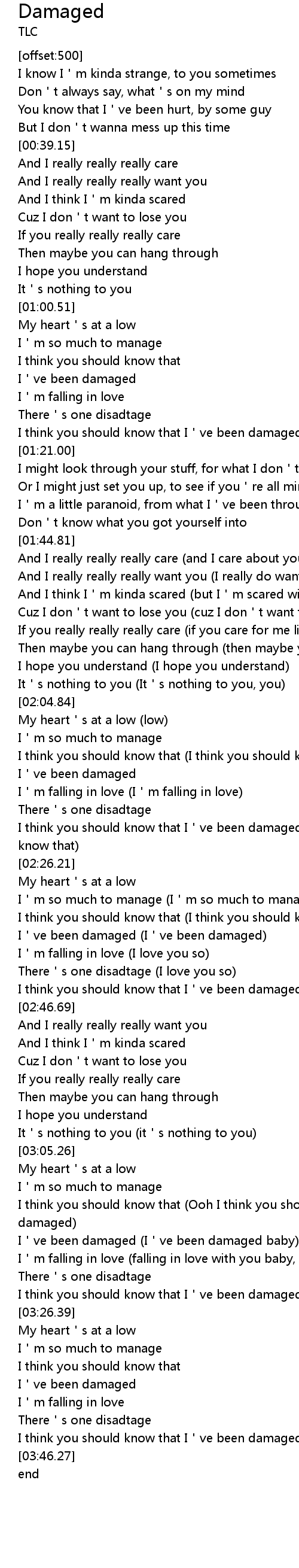 | [03:13.33] | I've been damaged (I've been damaged baby) |