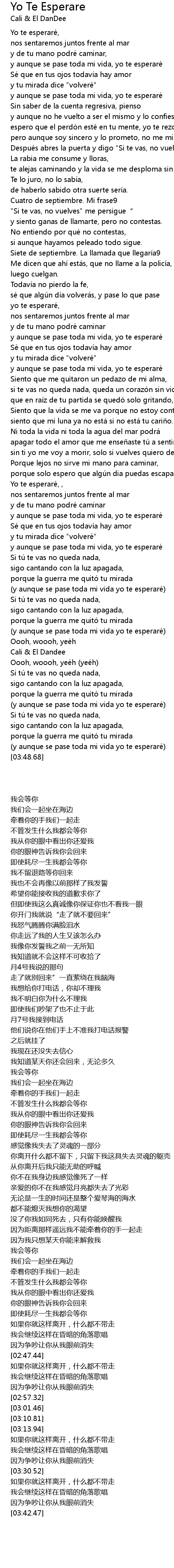 | [02:47.44] | y aunque se pase toda mi vida yo te esperaré |