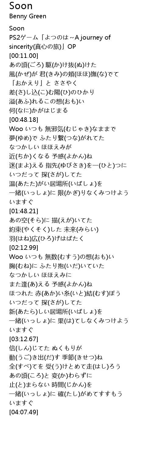 | [00:08.00] | PS2ゲーム「よつのは~A journey of sincerity(真心の旅)」OP |