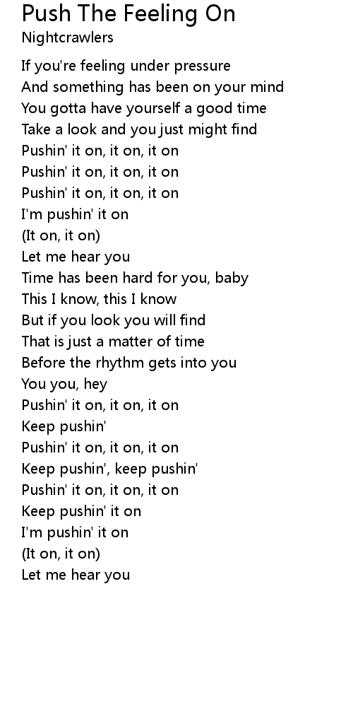 Keep pushin' it on |