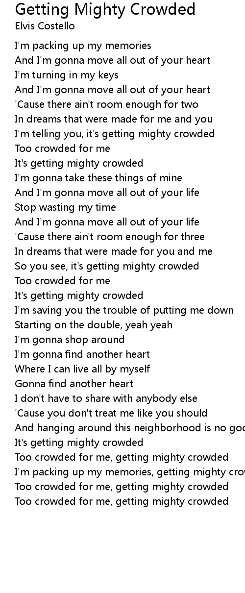 Too crowded for me, getting mighty crowded |