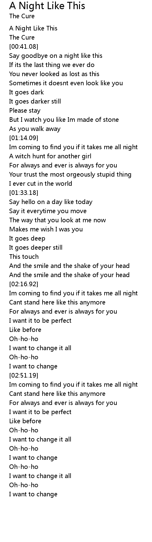 | [02:18.25] | Im coming to find you if it takes me all night |