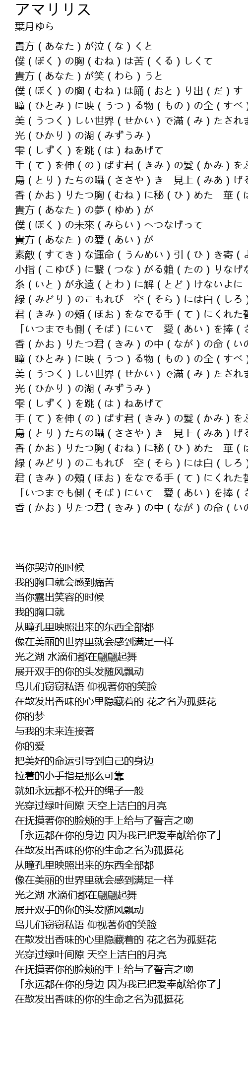 | [02:53.53] | 香(かお)りたつ君(きみ)の中(なが)の命(いのち)の名(な)はアマリリス |