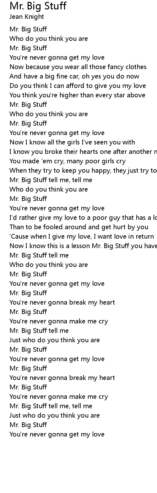 Now I know this is a lesson Mr. Big Stuff you haven't learned |