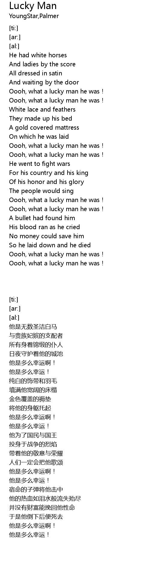 | [02:29.41] | Oooh, what a lucky man he was! |