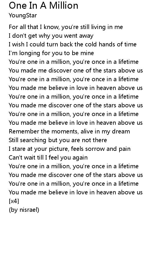 You're one in a million, you're once in a lifetime |