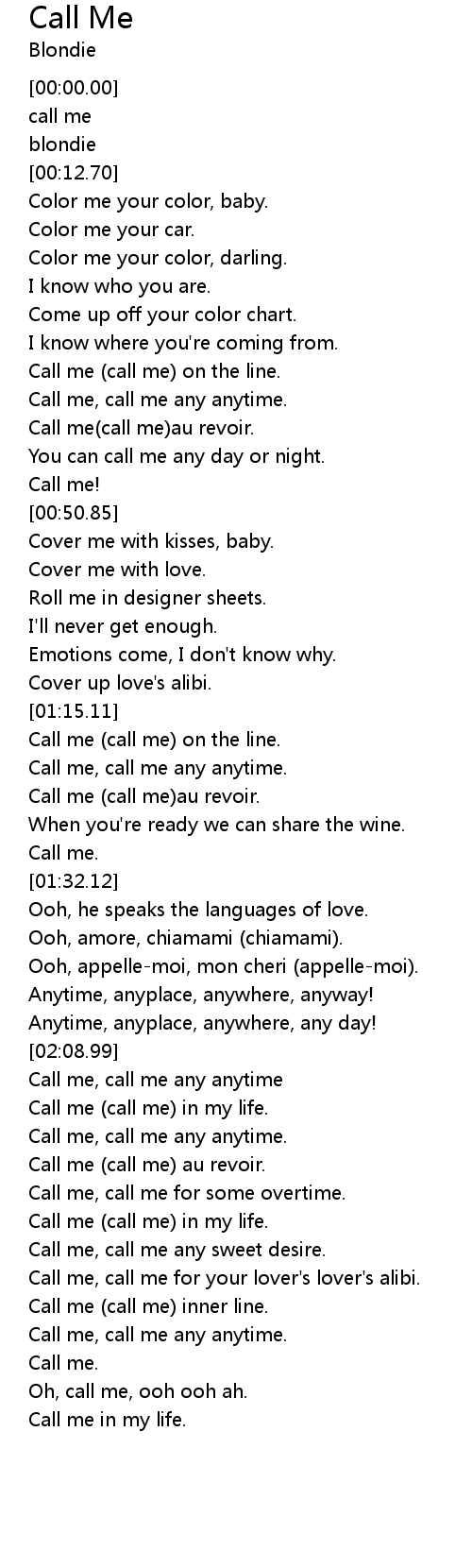 [02:46.15] Call me, call me any anytime.