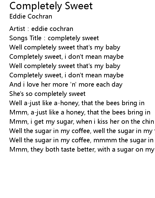| Well the sugar in my coffee, mmmm the sugar in my tea | |