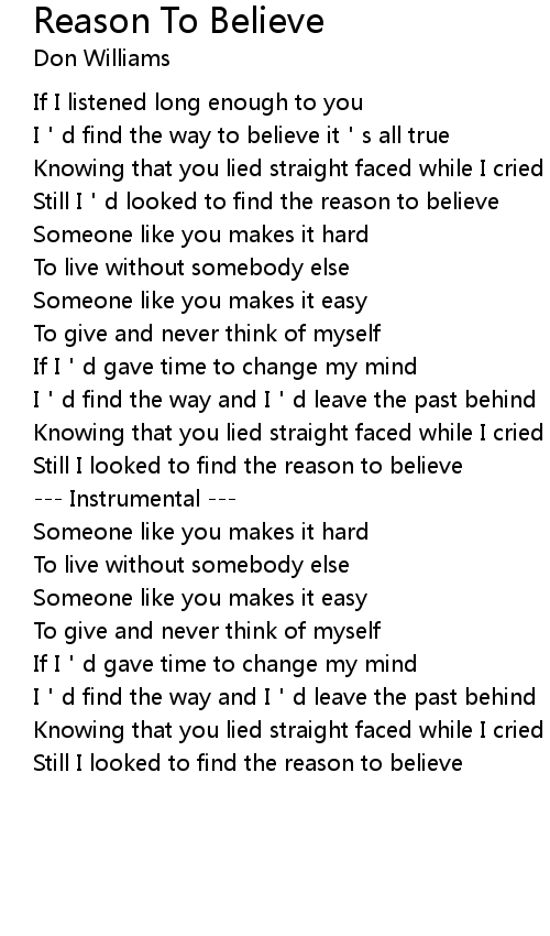 | [00:28.43] | Still I d looked to find the reason to believe |
