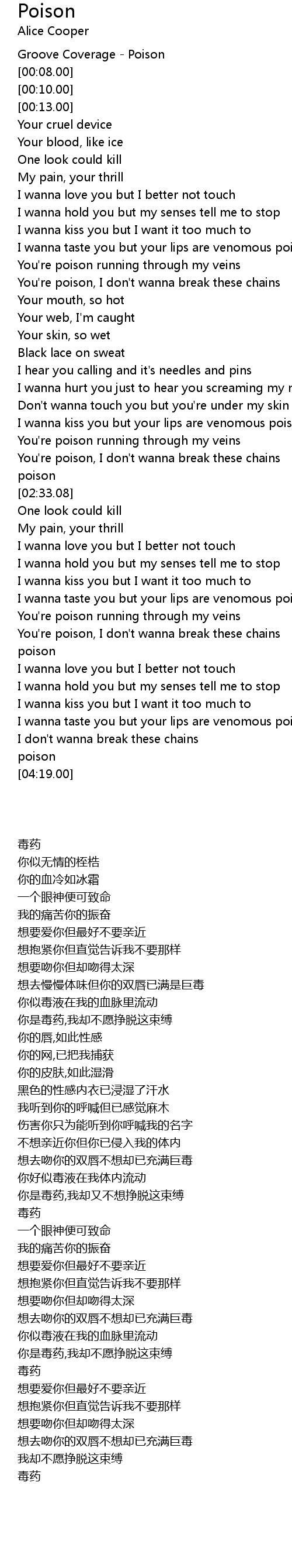 I wanna taste you but your lips are venomous poison |