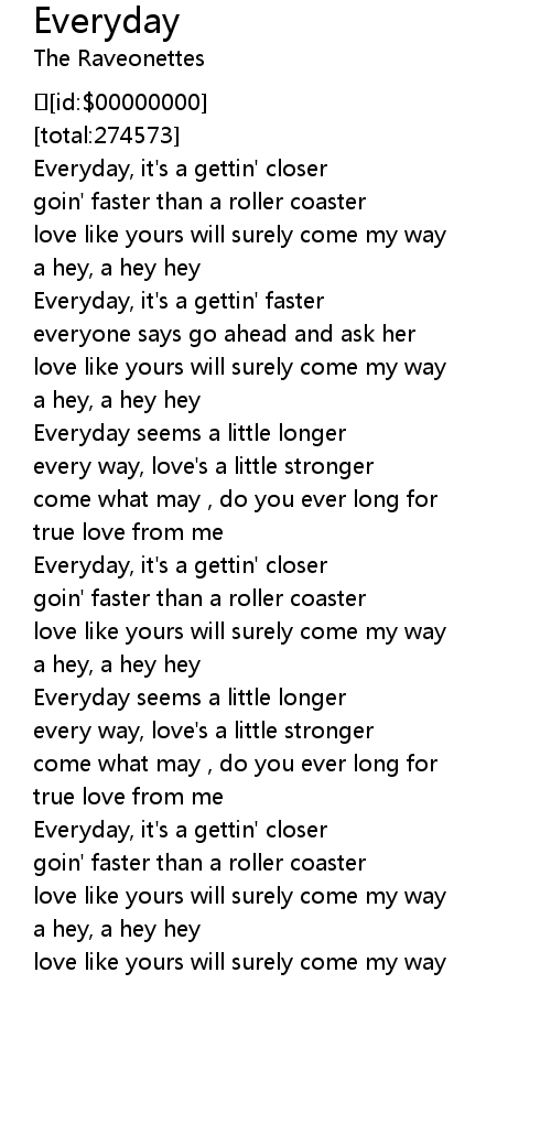 | [00:24.396] | Everyday, it's a gettin' closer |