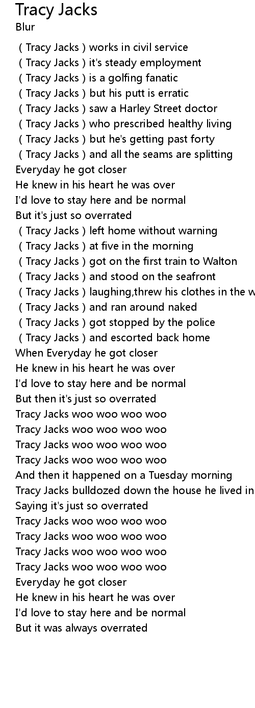 | [02:00.92] | Tracy Jacks woo woo woo woo |